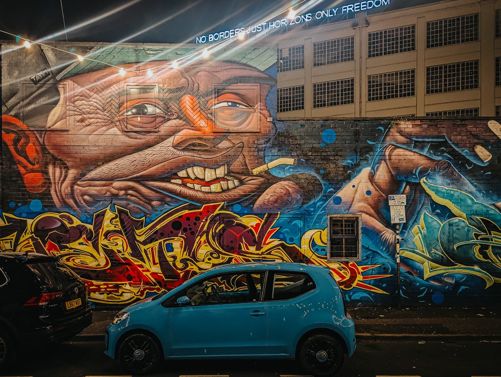 With visions of the Shelby family ruling the streets, we set out, attempting to retrace the fictional steps of the iconic Peaky Blinders. But as twilight turned to darkness, the silhouettes of historic buildings became our guides. The world of the Shelbys might have been elusive, but what we found in its stead was a world of technicolor brilliance. My sister’s (Justyna) recommendation brought our attention to the streets adorned with graffiti.