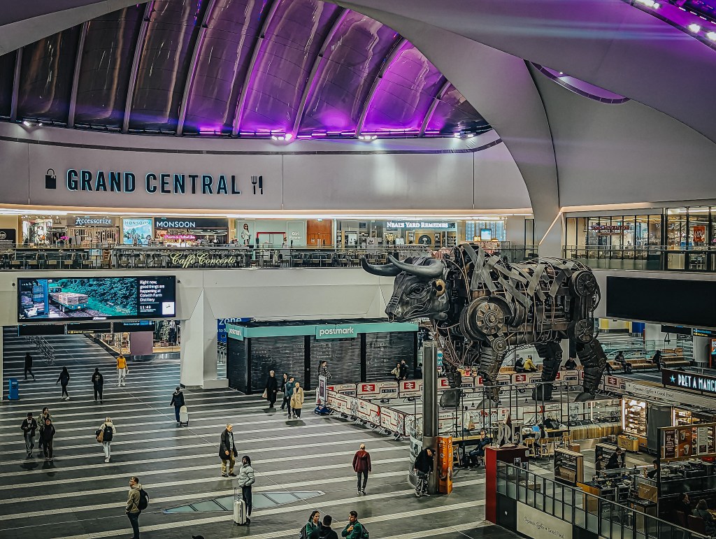 We couldn’t miss the ‘Commonwealth Games raging bull’ at Grand Central Birmingham, a testament to the city’s sporting spirit.