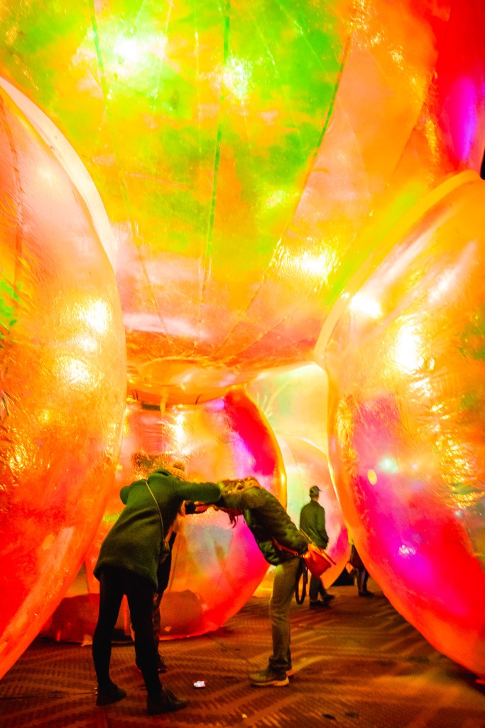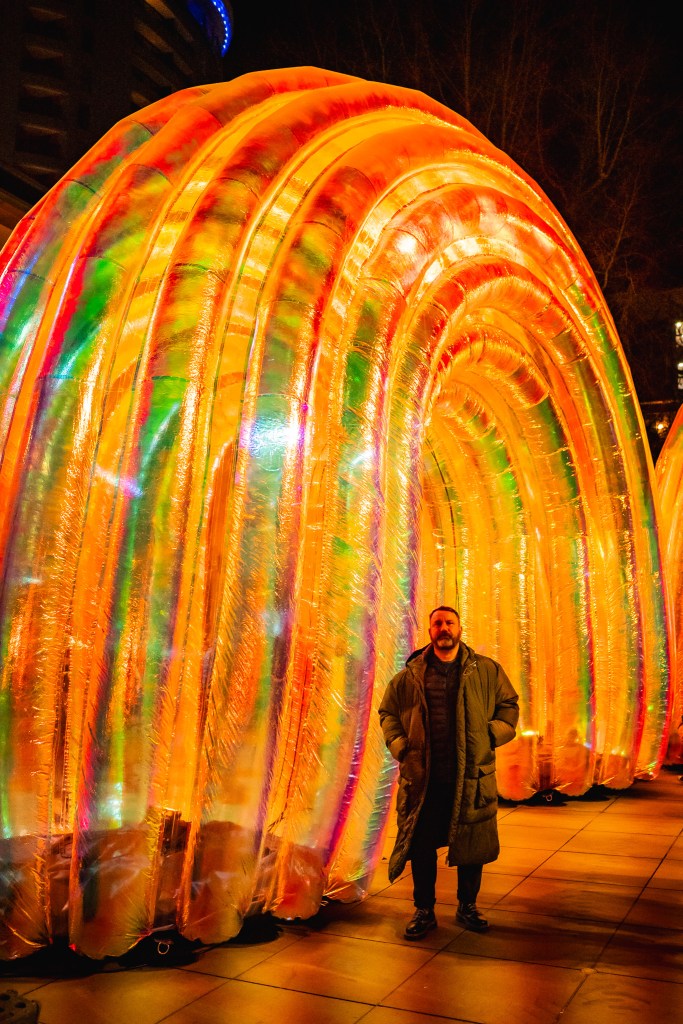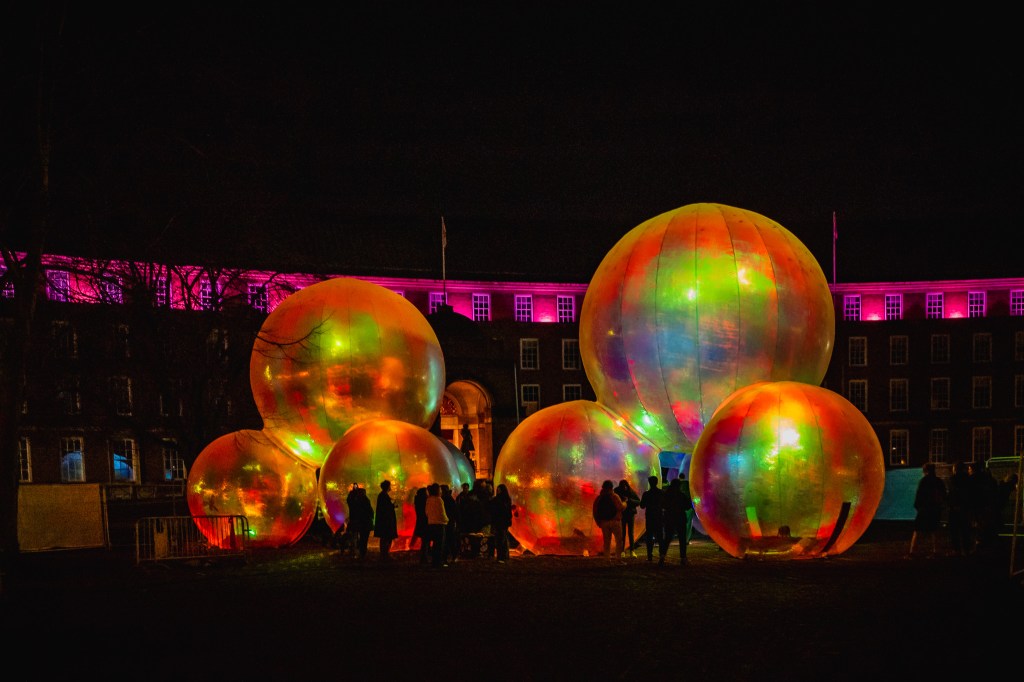 At Quakers Friars, “Elysian” by Atelier Sisu presented us with colossal inflatable arches, illuminating the night and inviting exploration. Walking through these arches felt like entering a fantastical world, highlighting the festival’s ability to transform the city’s landscape into an interactive playground.