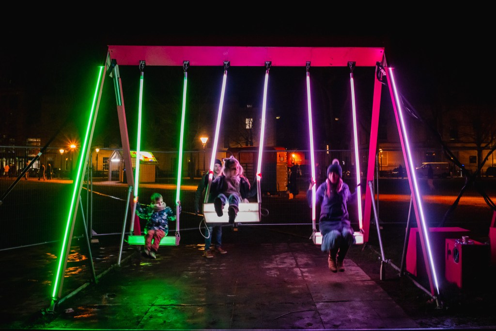 Finally, Queen Square offered “The Nectary” and “Swing Song,” installations that appealed to all senses. “The Nectary,” a collaboration between Alison Smith and Dr. Chris Hassall, was an immersive dive into the importance of pollination, while “Swing Song” by Bristol Light Festival and Tired Industries turned play into music, lighting up with every swing.