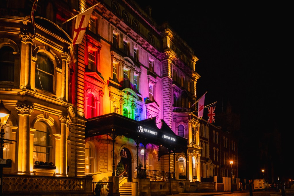 An unexpected highlight was the Bristol Marriott Royal Hotel, which added its own splash of colour to the festivities. The hotel’s façade was bathed in vibrant lights, contributing to the festival’s canvas of illumination and adding an extra layer of beauty to the city’s night-time skyline. It was a reminder that the festival’s reach extended beyond the designated installations, touching even the historic and everyday structures of Bristol, making the entire city a part of the celebration.