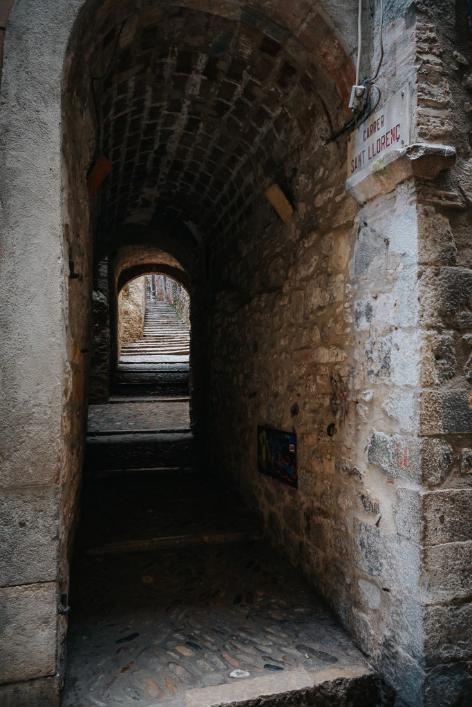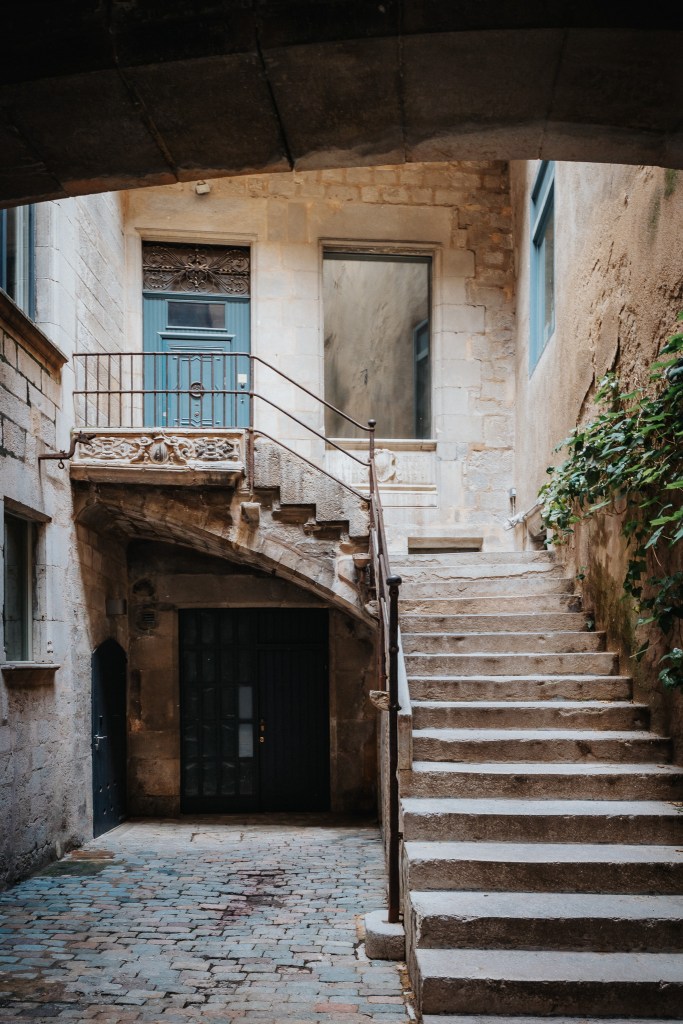 A short walk from the Jewish Museum brought us to another beautiful part of Girona featured in Game of Thrones – the Escales de Sant Martí. These grand steps lead up to the Church of Sant Martí Sacosta, offering another glimpse into Girona’s rich architectural heritage. The steps, flanked by historic buildings, create a dramatic setting that’s perfect for photos. As we climbed, we appreciated the blend of history and natural beauty that makes Girona so special.
