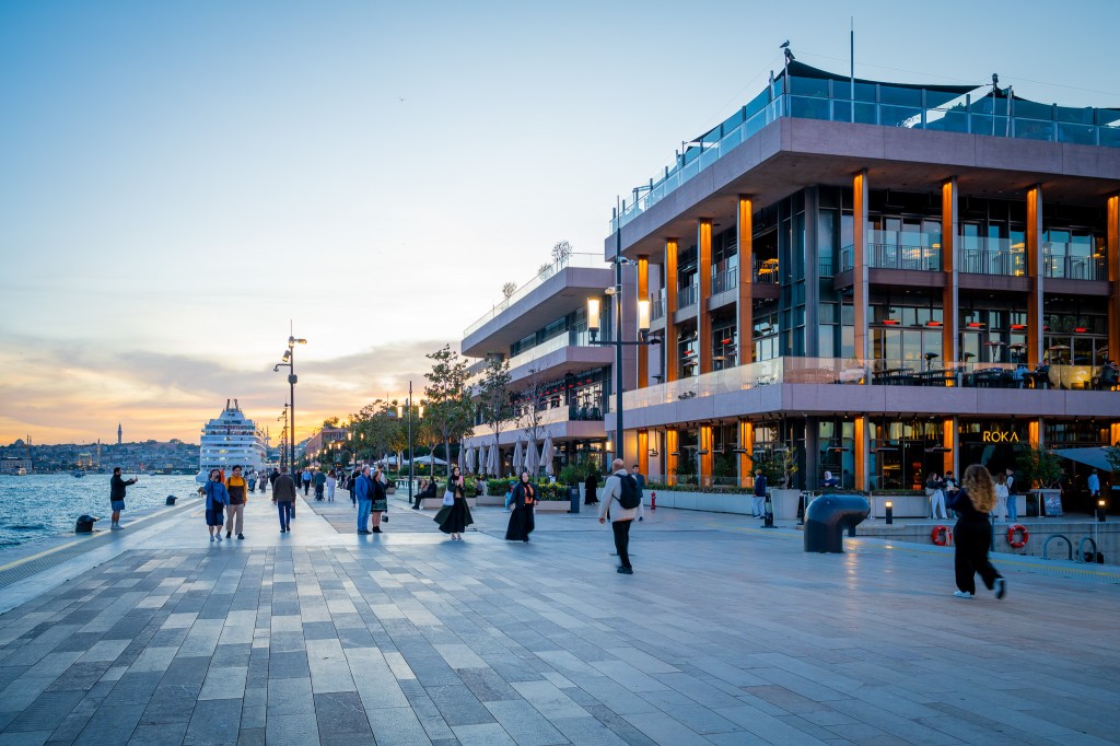Our walk continued to the Dolmabahçe Palace, though we arrived too late to enter. No matter – the palace gates, bathed in the golden hues of sunset, were breathtaking enough. On the way back, we discovered Galataport Promenade, a modern waterfront area filled with trendy cafes and shops.