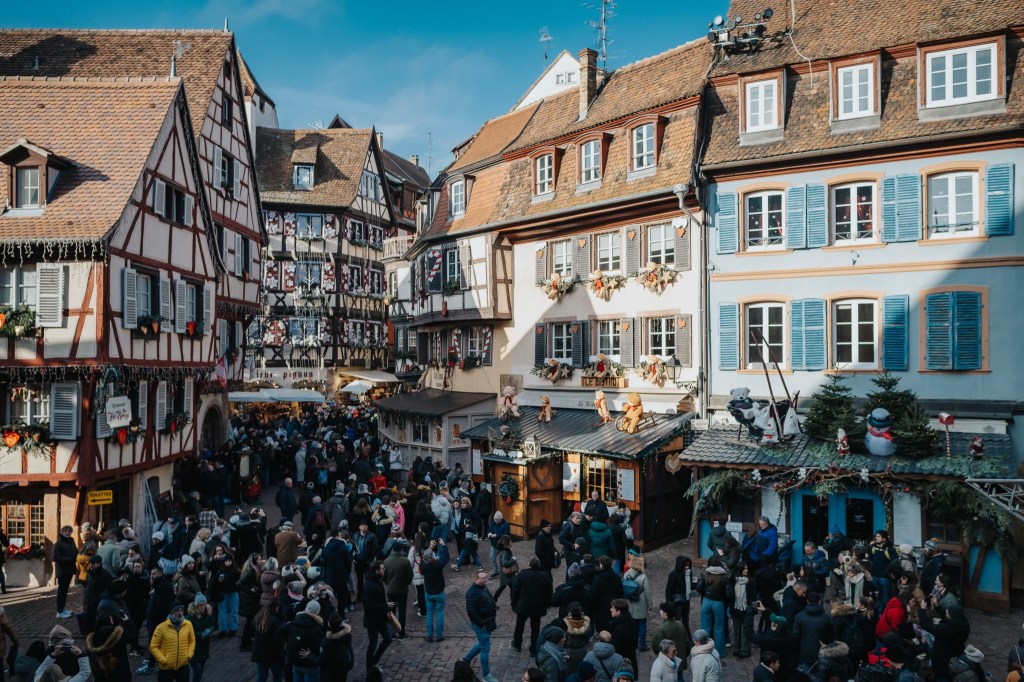 Just a 30-minute train ride from Strasbourg sits Colmar, a smaller but equally enchanting town. Despite its modest size, it’s every bit as crowded, though I found it felt a touch more intimate and cosy than its larger neighbour. Its half-timbered houses and narrow lanes remind me of something out of ‘Beauty and the Beast.’ Adding Christmas into that already charming setting results in pure magic.