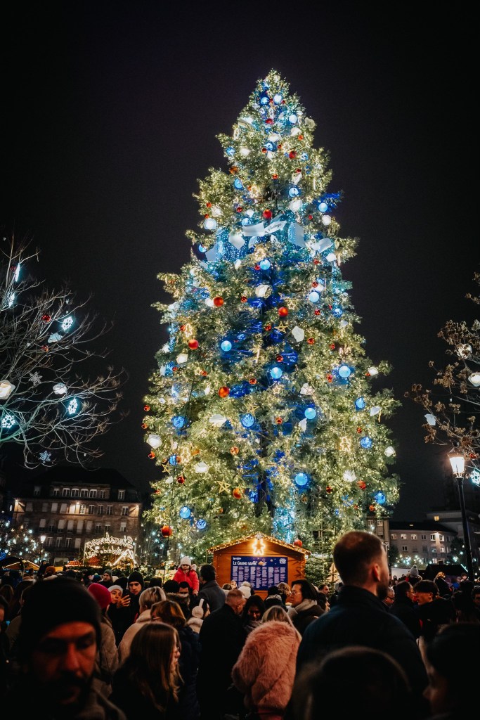 The towering Christmas tree at Place Kléber is the city’s proud symbol of Christmas. Standing a breathtaking 30 metres high, it takes an incredible amount of effort from the forestry team (ONF) to prepare. They spend about 120 hours ensuring it’s in top form, adding up to 180 extra branches, and draping it in 7 kilometres of fairy lights! Adorned with 240 illuminated cherubs, 200 twinkling bouquets, and 400 gold and red baubles, it’s a showstopper. Make sure to catch the light show; we saw it on Friday at 8 p.m. and again on Saturday at 5 p.m. It seems to happen every hour once it’s dark, adding an extra sprinkle of sparkle to your evening.