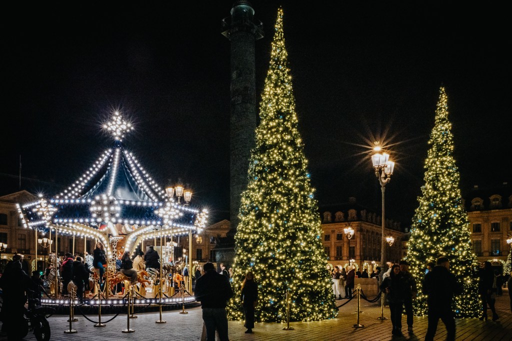Feeling buoyed by festive cheer, we ventured over to Place Vendôme, one of Paris’s most stunning squares. During the holidays, the luxury shops really put on a show—think high-end window displays that make you question whether you should remortgage your house for a handbag. There was even a free Louis Vuitton carousel, where people took joyrides under dazzling lights (the word “fabulous” does not even begin to cover it).
