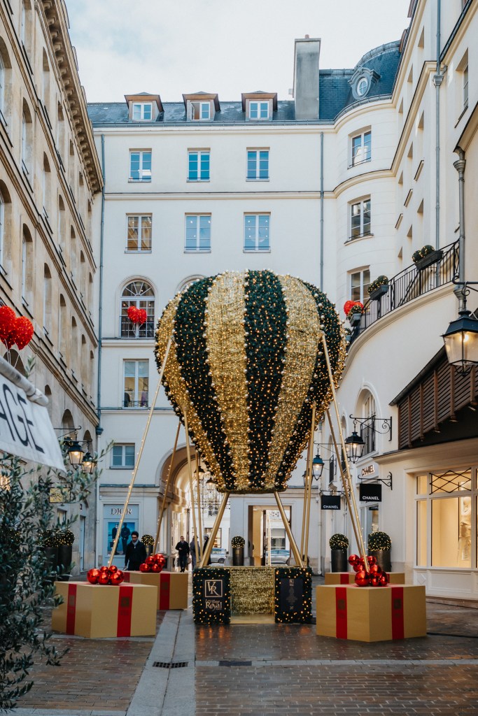 Next, we wandered over to Le Village Royal, a hidden passageway accessible from Rue Boissy D’Anglas. The courtyard here transforms into a little festive pocket paradise during the holidays, with adorable cafés, fairy lights, and boutiques that might tempt your credit card beyond reason. The decorations are top-notch, perfect for the inevitable flurry of selfies.