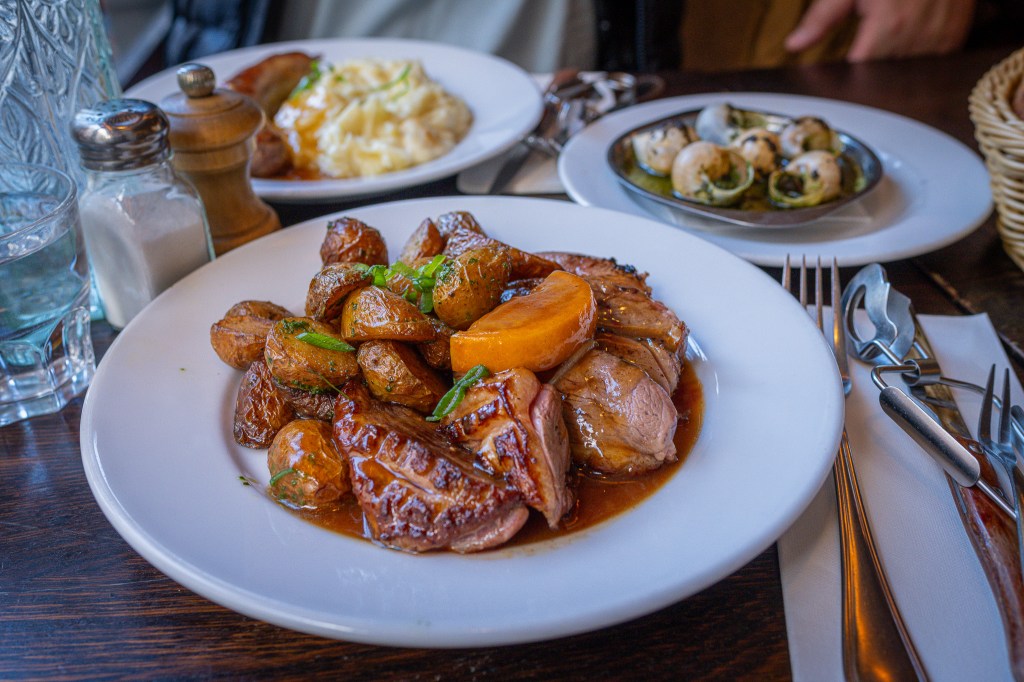 After all that walking, we refuelled at A La Place Saint Georges. Here, I finally gave in to my curiosity and tried escargots (snails, for the uninitiated). They were garlic-buttery bliss, much to my own surprise! I followed that with their famed Orange Duck, while my hubby devoured sausage and mash (which he declared the best he has ever had—and he is a fussy one, so that is really saying something).