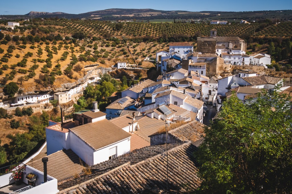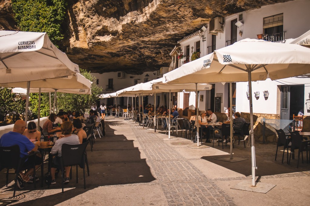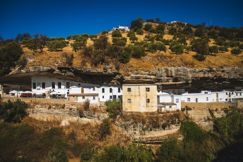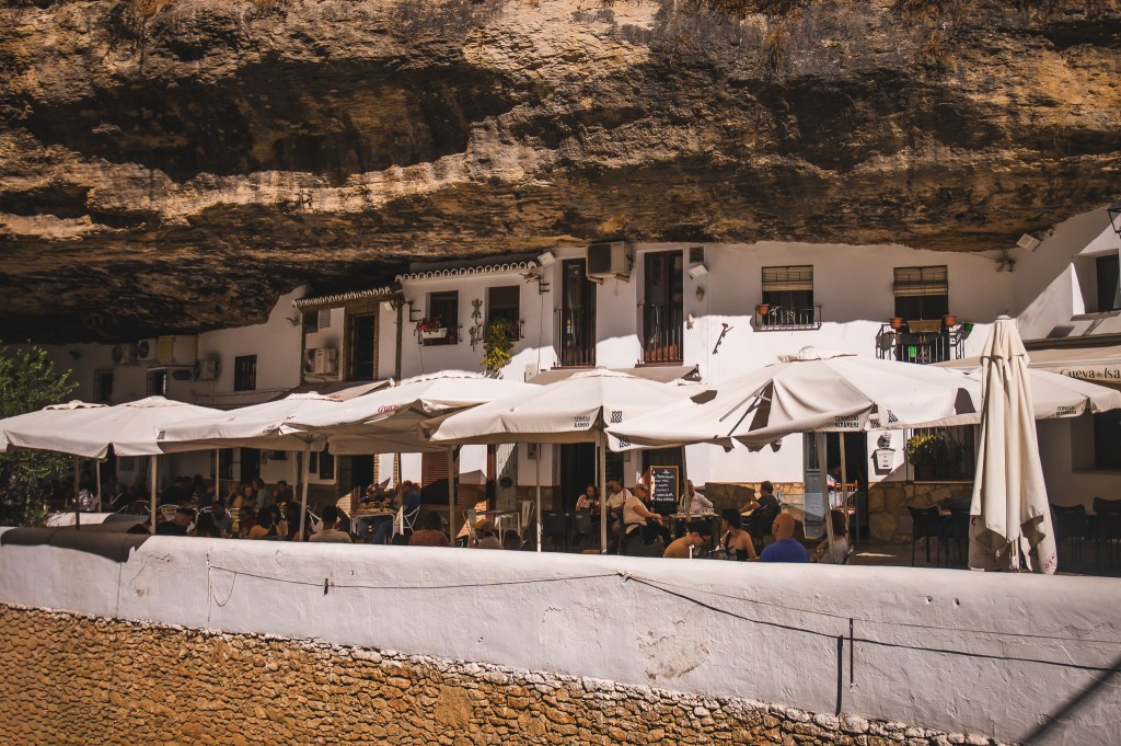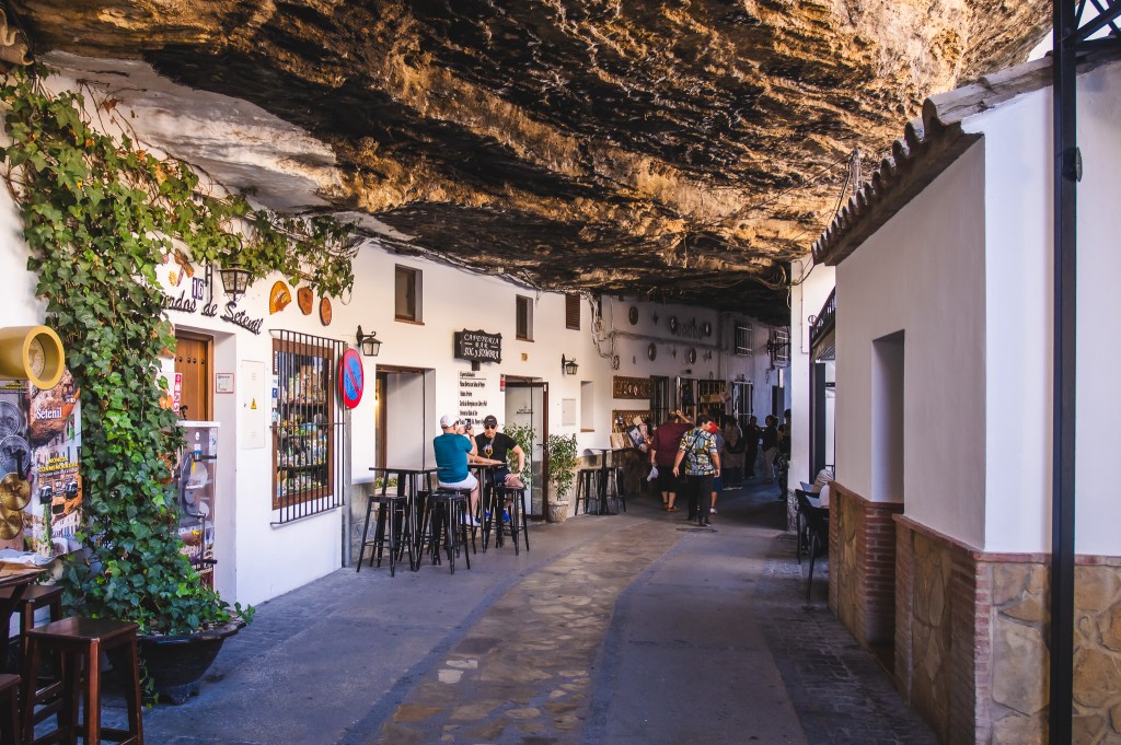 A village unlike anything we’d seen before. Casas blancas tucked directly under enormous rock overhangs, houses literally carved into cliffs, streets shaded by natural stone ceilings. It’s the kind of place that makes you blink twice, because your brain can’t decide whether it’s a film set, a fantasy village, or a geological miracle that humans just… moved into.
