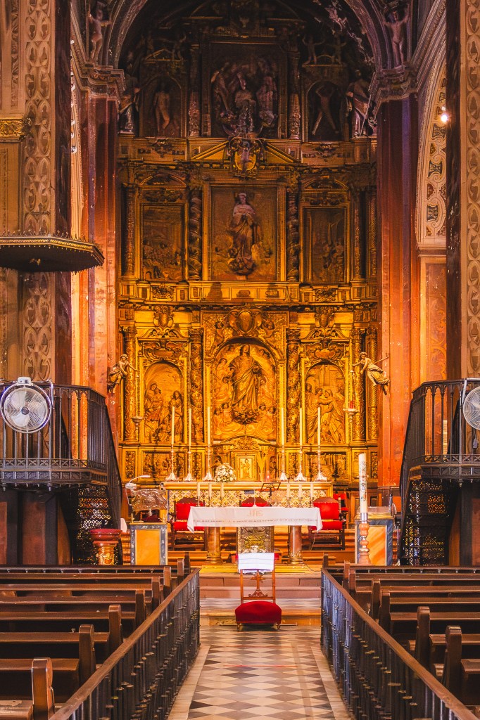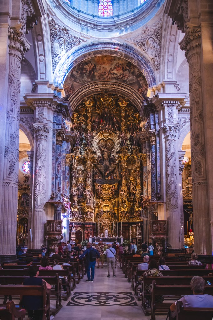 Before leaving the centre, we visited the Iglesia Colegial del Divino Salvador, beautifully included in our cathedral ticket. Warm light, pink façades, and richly decorated interiors, the perfect quiet pause before our final stop.