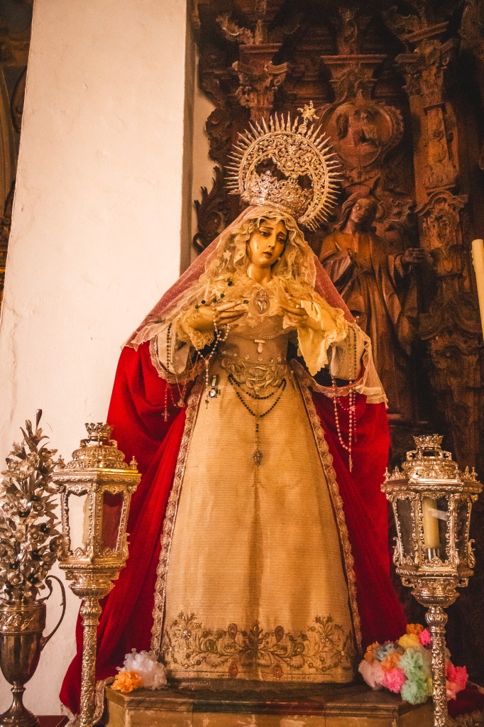 Utrera welcomed us with warm air, orange trees, and the gentle sound of church bells. We wandered through the old streets, moving from one church to another, passing the castle, and watching the squares which were completely empty due to the siesta time. Utrera has an impressive number of churches for its size, each one with a different personality. We started at the Iglesia de Santiago el Mayor, a majestic Gothic church dating back to the 14th century. Its stone façade dominates the skyline, and if you step inside, the cool air and intricate altarpiece instantly remind you why Andalusia takes faith and beauty so seriously.